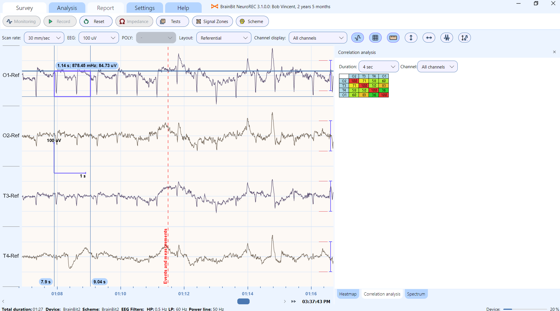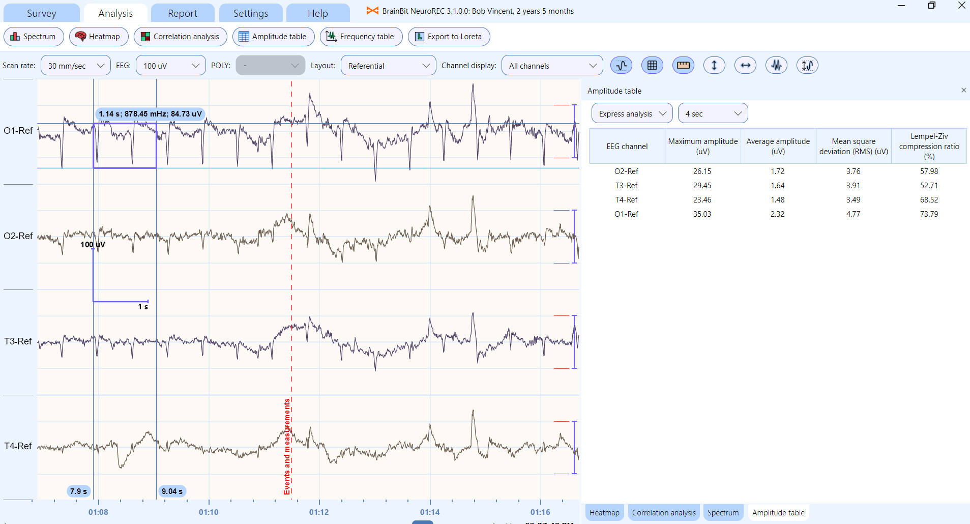 - QEEG analysis including power spectrum, 3D topographic mapping and correlative analysis